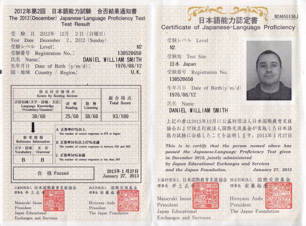 | 2012 | 日本語能力試験N2を受験し、合格 | |